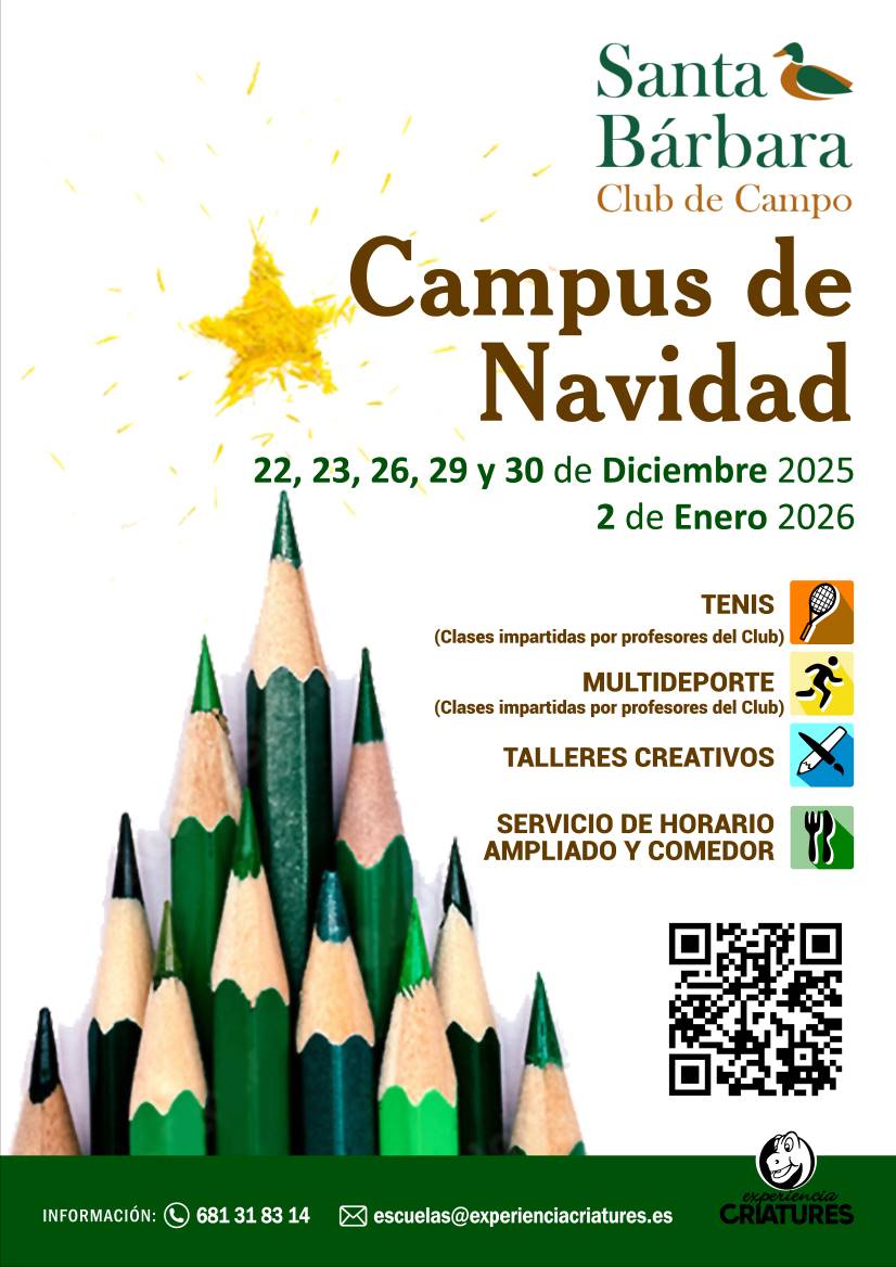Estas navidades organizamos un campus pensado para que los niños disfruten, aprendan y se mantengan activos durante las vacaciones. Las actividades están dirigidas a niños entre 3 y 12 años y se realizarán los días 22, 23, 26, 29 y 30 de diciembre de 2025 y el 2 de enero de 2026.