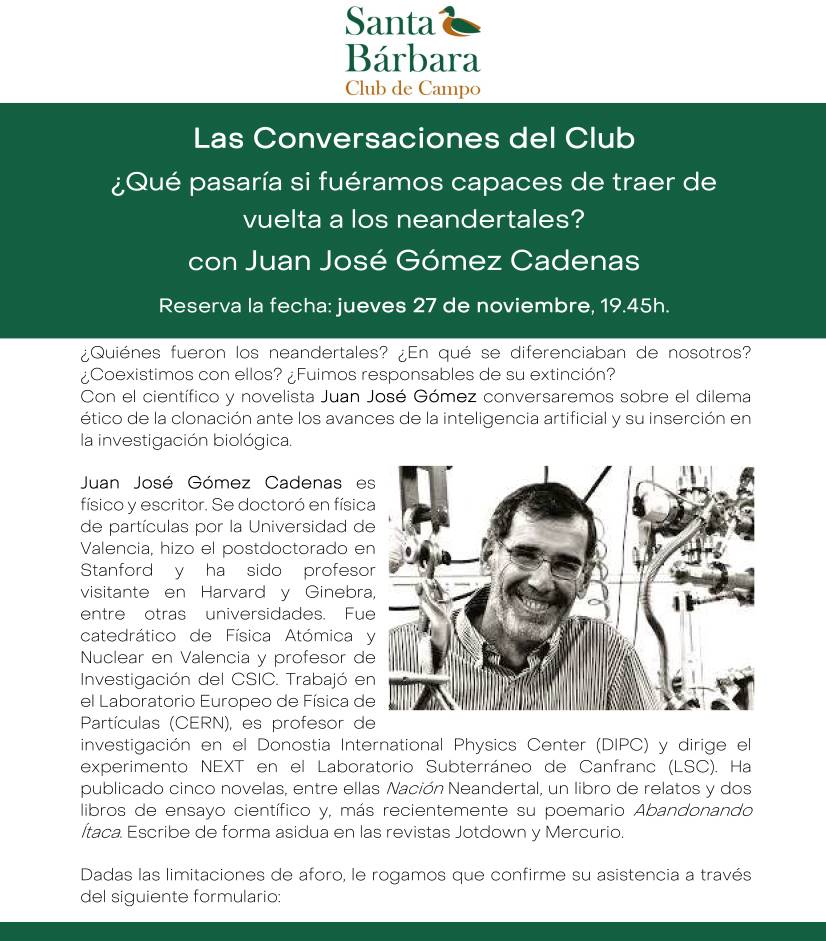 Las Conversaciones del Club. ¿Qué pasaría si fuéramos capaces de traer de vuelta a los neandertales? con Juan José Gómez Cadenas