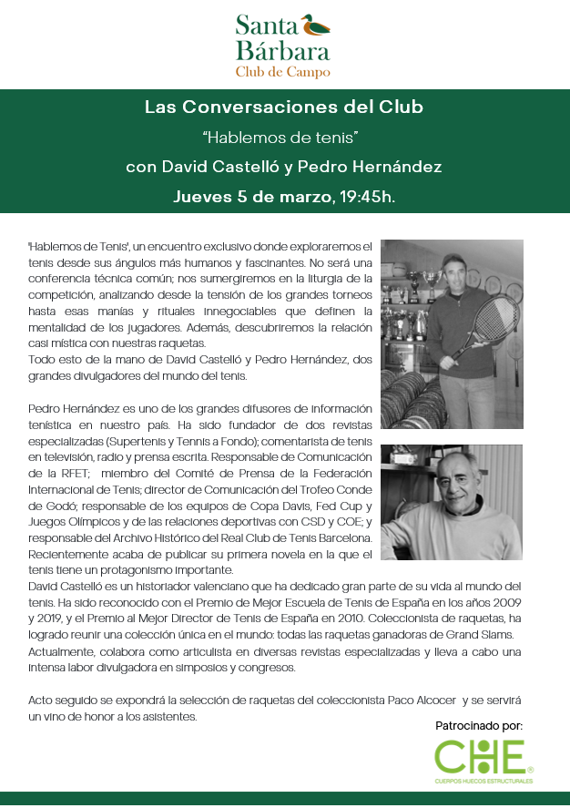 Las Conversaciones del Club, “Hablemos de tenis”. Con David Castelló y Pedro Hernández